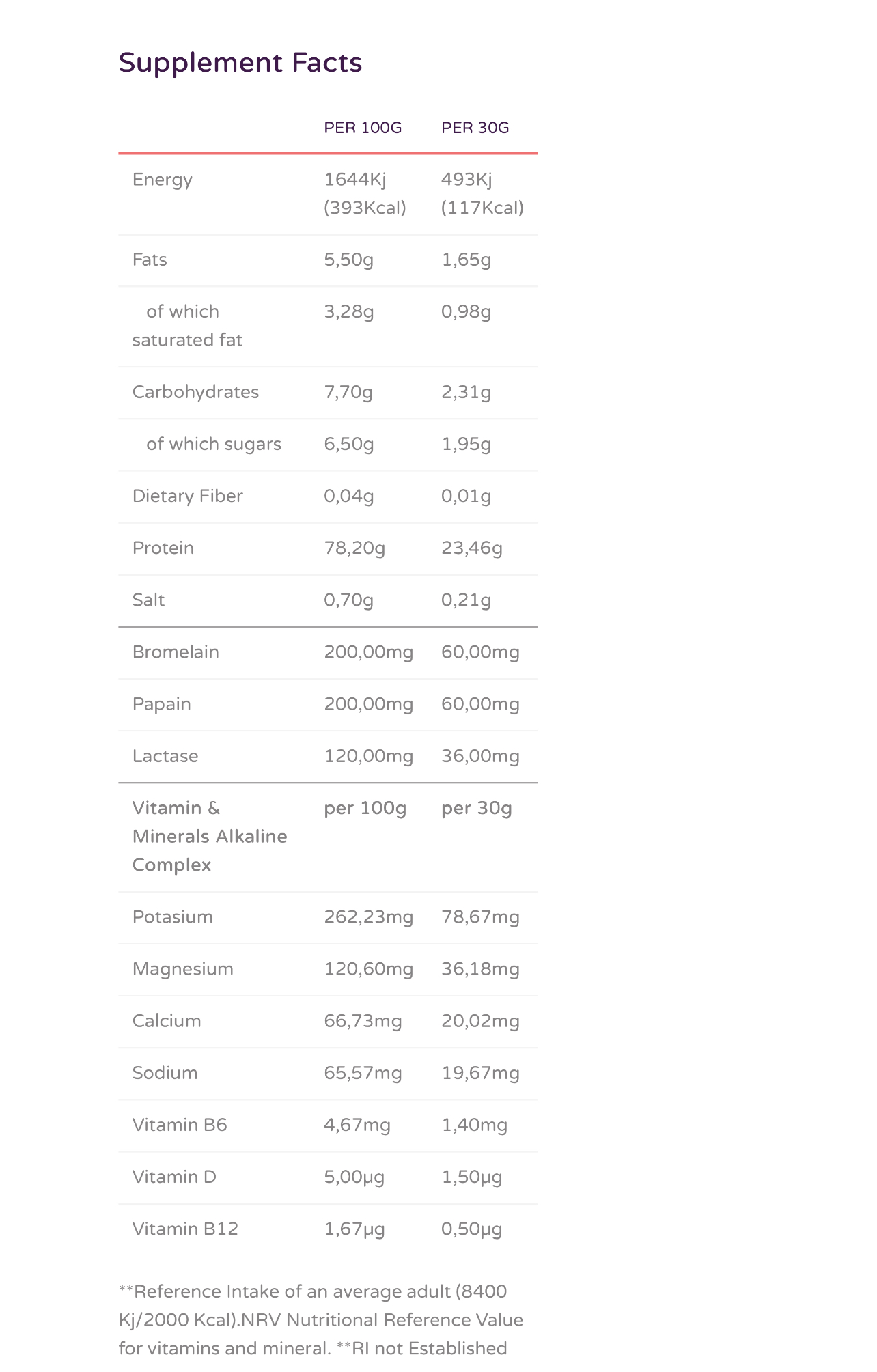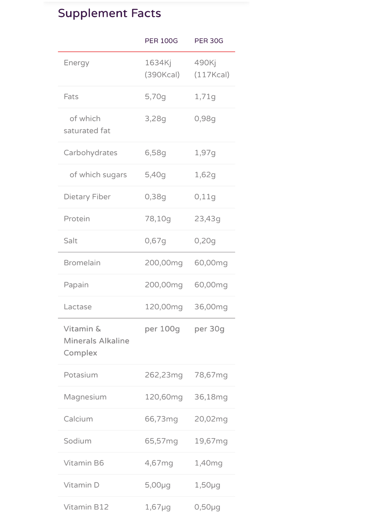 طريقة الاستخدام: بعد التمرين أو بين الوجبات حسب النظام الغذائي المتبع يحتوي السكوب على 23 جرام بروتين – 1.7 جرام فات – كربوهيدرات 2.1 جرام.