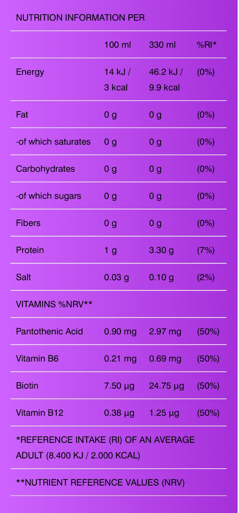 يحتوي المنتج على فيتامينات ب الضرورية مثل حمض البانتوثينيك، فيتامين ب6، البيوتين، وفيتامين ب12، والتي تساهم في عمليات الأيض وإنتاج الطاقة في الجسم.