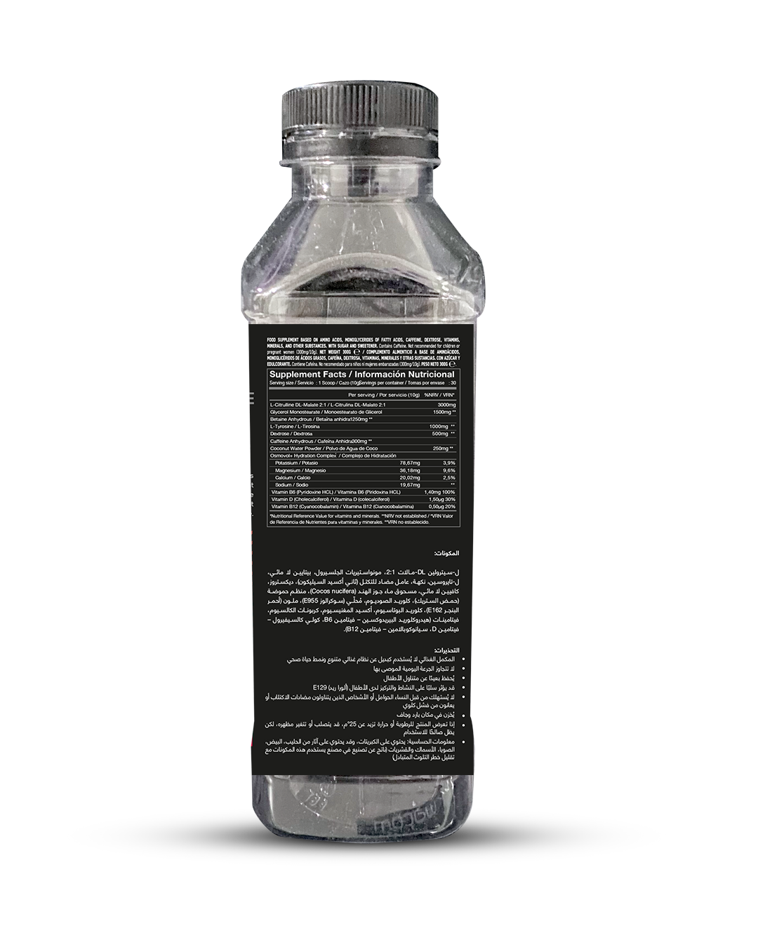 Pre-workout formula for maximum muscle pump, hydration, strength and endurance.